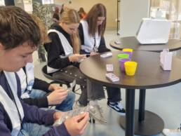 Onze docenten Piet Klop en Alienke de Rover-Zonnenberg verzorgden twee keer een workshop Drone besturen en een workshop Robotica. De medewerkers gingen zelf vol enthousiasme aan de slag met het coderen van de drones, deze laten manoeuvreren en landen en met het programmeren van onze verschillende robots. In onze maakhal was er tweemaal een BrAInstormed Tafel Escape Game door Olivier Events. Daarnaast waren er in ons auditorium twee gastsprekers. In de ochtend nam Robbert van Empel de aanwezigen mee in het ‘Goochelen met AI’: hoe kan AI zorgen voor minder werkdruk èn betere lessen? ’s Middags ging Michiel Kalverda van TMI dieper in op de impact van AI op het kind. Een dag waarin vele bezoekers het i_lab van binnen hebben kunnen zien en ervaren; we hopen natuurlijk dat dit enthousiasme tot een vervolg leidt en de docenten met hun klassen terugkomen voor een workshop of gastles.